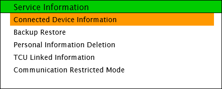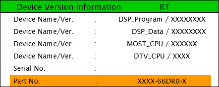 Malfunction information may be sent for the DTC detected during the repair. - Confirm the part number of the remote tuner: Press and hold the “Volume” knob, then press and hold the “Entertainment” and “Favorites” buttons at the same time for 3-5 seconds. The “Factory/Service Inspection” screen will appear.