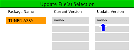 13. Confirm the correct software version is shown under “Update Version” and select “TUNER ASSY” on the screen below.