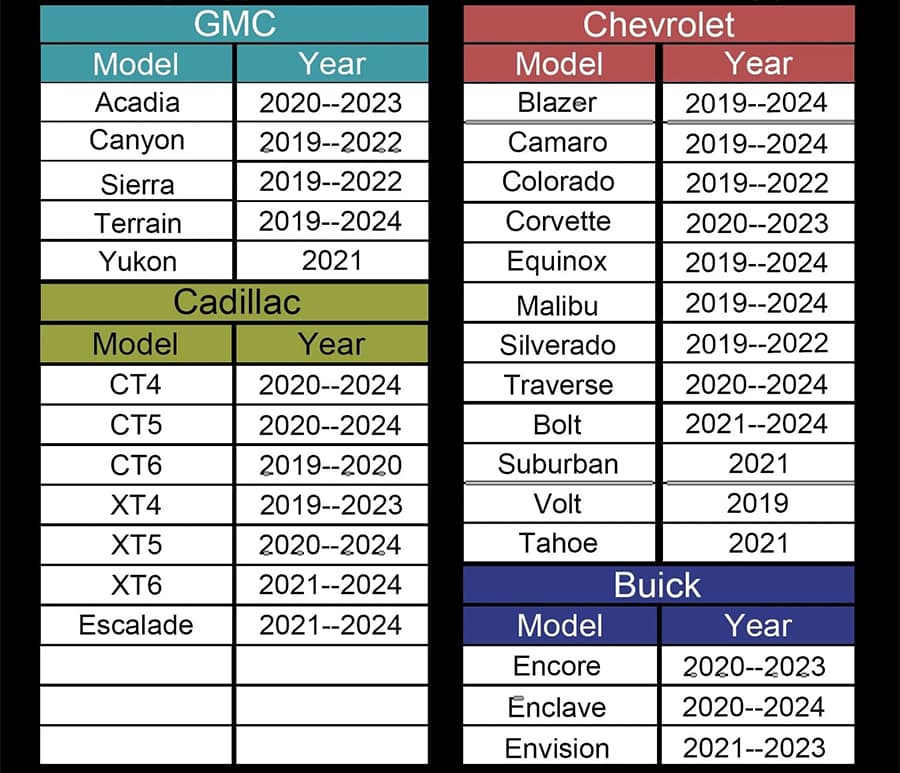 Compatible with GMC Models: